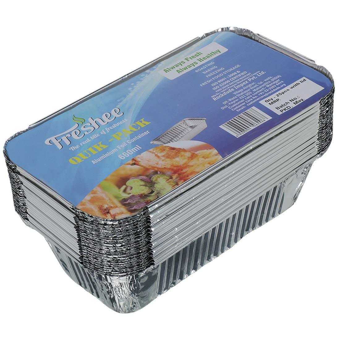 Freshee 25pcs 660ml Disposable Aluminium Foil Containers with Lid