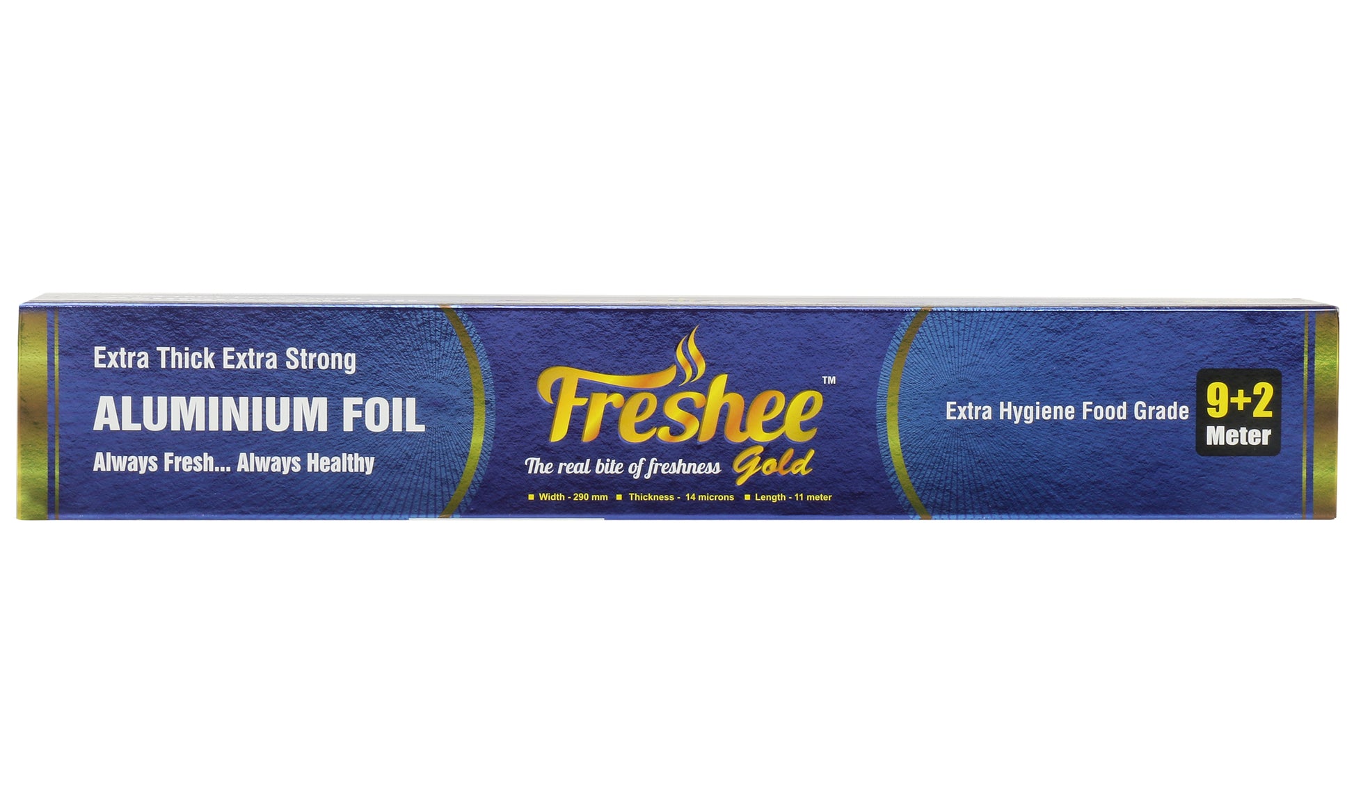5. Freshee Aluminium Foil is available in wide variety to select from like 10 m, 20 m 25 m, 99 m and 72 m with different thickness of 11 microns, 15 microns and 18 microns as per your requirement <b>Brand Description Freshee is one of the fastest growing brand in the FMCG consumable space. Freshee has a range of products including Aluminum Kitchen Foil and Aluminium Containers which are 100% recycleable. At Freshee, we are fully committed to the safety and hygiene of our consumers and ensure that all our products maintain the “Freshee standards” which include highest quality products with food grading, bacteria resistance and delivery as per mentioned specifications. Freshee is certified with global standards of BRC and Halal Certified.