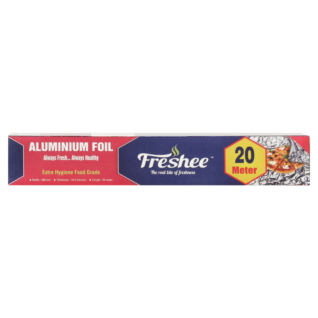 Freshee Kitchen Foil is a food grade product that is 100% recyclable, hygienic. Freshee Kitchen Foils are manufactured according to the highest global standards to keep your food fresher and safer for longer. Benefits of Freshee Aluminium Foil Roll Paper. 1. Freshee foil wrapping is ideal for anyone who is storing food that will be reheating it in the near future. Since aluminum foil can withstand high temperatures, it makes this Freshee food packing material the best foil for the job. 2. The ease of packaging your food with Freshee aluminum foil is what makes it the most ideal house hold and food industry item. It forms easily around any shape and takes just a few seconds to complete the packaging process. 3. Freshee Aluminum foil is impervious to moisture, light and all gases. Because of it's ability to block out moisture especially, it helps the food last longer than if it were wrapped in plastic. 4. Environment Safe - Freshee Aluminium foil isn’t a huge problem with regards to waste, as Aluminium is a natural part of the environment and animals won’t eat it and suffer, unlike plastic. 5. Freshee Aluminium Foil is available in wide variety to select from like 10 m, 20 m 25 m, 99 m and 72 m with different thickness of 11 microns, 15 microns and 18 microns as per your requirement. Freshee is one of the fastest growing brand in the FMCG consumable space. Freshee has a range of products including Aluminum Kitchen Foil and Aluminium Containers which are 100% recyclable. At Freshee, we are fully committed to the safety and hygiene of our consumers and ensure that all our products maintain the “Freshee standards” which include highest products with food grading, delivery as per mentioned specifications. Freshee is certified with global standards of BRC and Halal Certified.