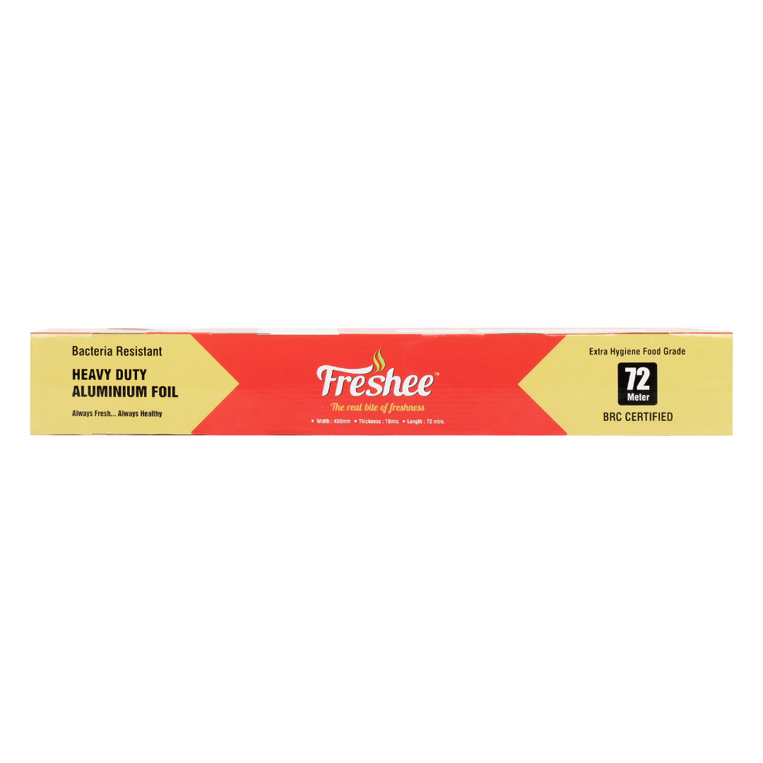 5. Freshee Aluminium Foil is available in wide variety to select from like 10 m, 20 m 25 m, 99 m and 72 m with different thickness of 11 microns, 15 microns and 18 microns as per your requirement Brand Description   Freshee is one of the fastest growing brand in the FMCG consumable space. Freshee has a range of products including Aluminum Kitchen Foil and Aluminium Containers which are 100% recycleable.  At Freshee, we are fully committed to the safety and hygiene of our consumers and ensure that all our products maintain the “Freshee standards” which include highest quality products with food grading, bacteria resistance and delivery as per mentioned specifications.  Freshee is certified with global standards of BRC and Halal Certified.