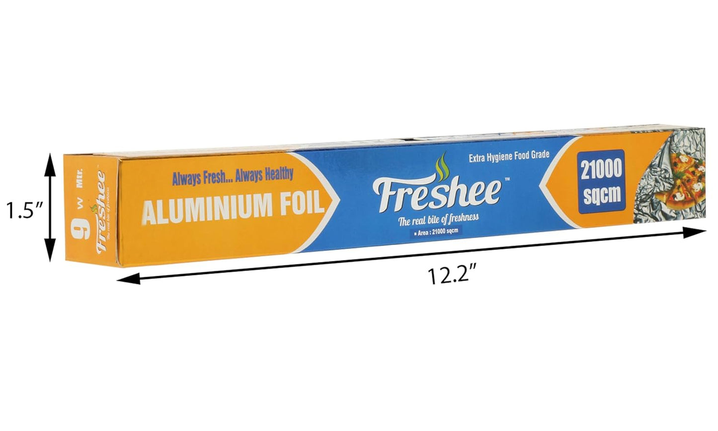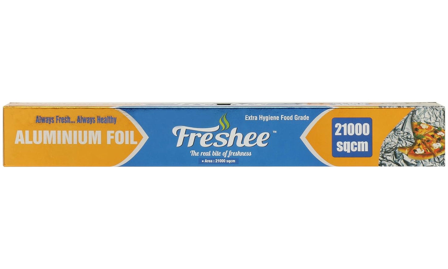 Freshee Aluminium Foil is 100% recyclable, eco-friendly, and non-toxic, making it a sustainable alternative to plastic. Available in multiple sizes and thicknesses (10m, 20m, 25m, 72m, and 99m rolls; 11, 15, and 18 microns), it is designed for everyday convenience — whether for wrapping lunches, cooking, packing takeaways, or presenting food stylishly.