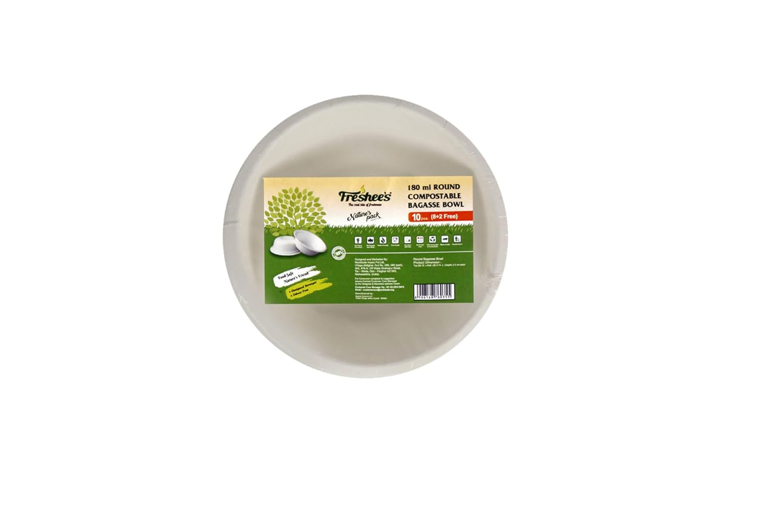 Freshee 180ml round bagasse bowls are compostable, economic and hygienic. These round disposable bowls are safe for the environment and a plastic-free solution to traditional plastic containers since they are compostable containers. The Freshee Disposable bowls are perfect for parties, birthdays etc and ideal solution for cafeterias and any events where you cater to large people. Since these compostable containers are made of bagasse, they do not have to be washed and reused, hence they are a water saving solution while being a environment safe solution as well.