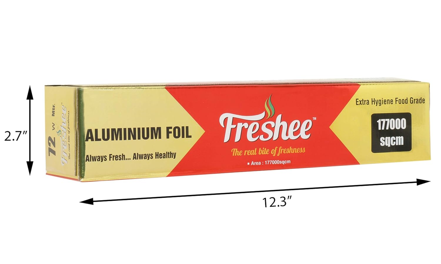 Freshee Aluminium Foil is 100% recyclable, eco-friendly, and non-toxic, making it a sustainable alternative to plastic. Available in multiple sizes and thicknesses (10m, 20m, 25m, 72m, and 99m rolls; 11, 15, and 18 microns), it is designed for everyday convenience — whether for wrapping lunches, cooking, packing takeaways, or presenting food stylishly.