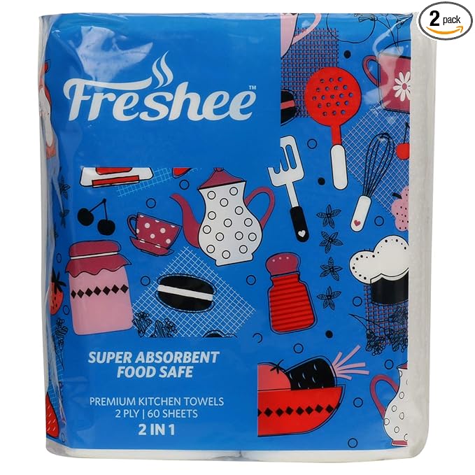 Freshee 4 in 1 Premium Kitchen Towels – 2-Ply, Super Absorbent & Food Safe (Natural Fiber)