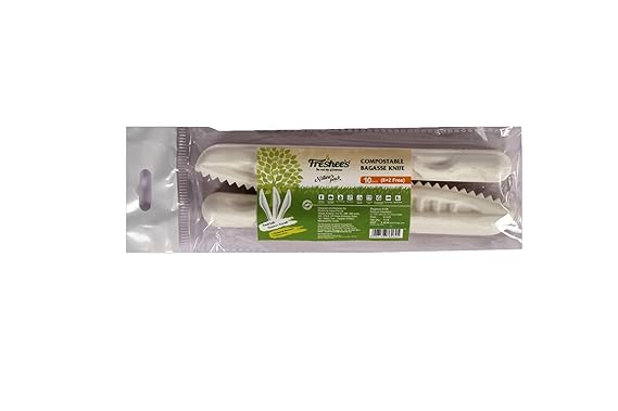 Freshee 10inch Bagasse Knife are compostable, economic and hygienic. These round bagasse plates are safe for the environment and a plastic-free solution to traditional plates since they are compostable plates. The Freshee Disposable plates are perfect for parties, weddings, camping, birthdays etc and ideal solution for cafeterias and any events where you cater to large people. Since these plates are made of bagasse, they do not have to be washed and reused, hence they are a water saving solution while being a environment safe solution as well.