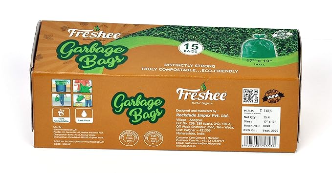 Freshee Garbage Bags come with a bunch of innovative features, the most important feature being it is completely compostable. Biodegradable...