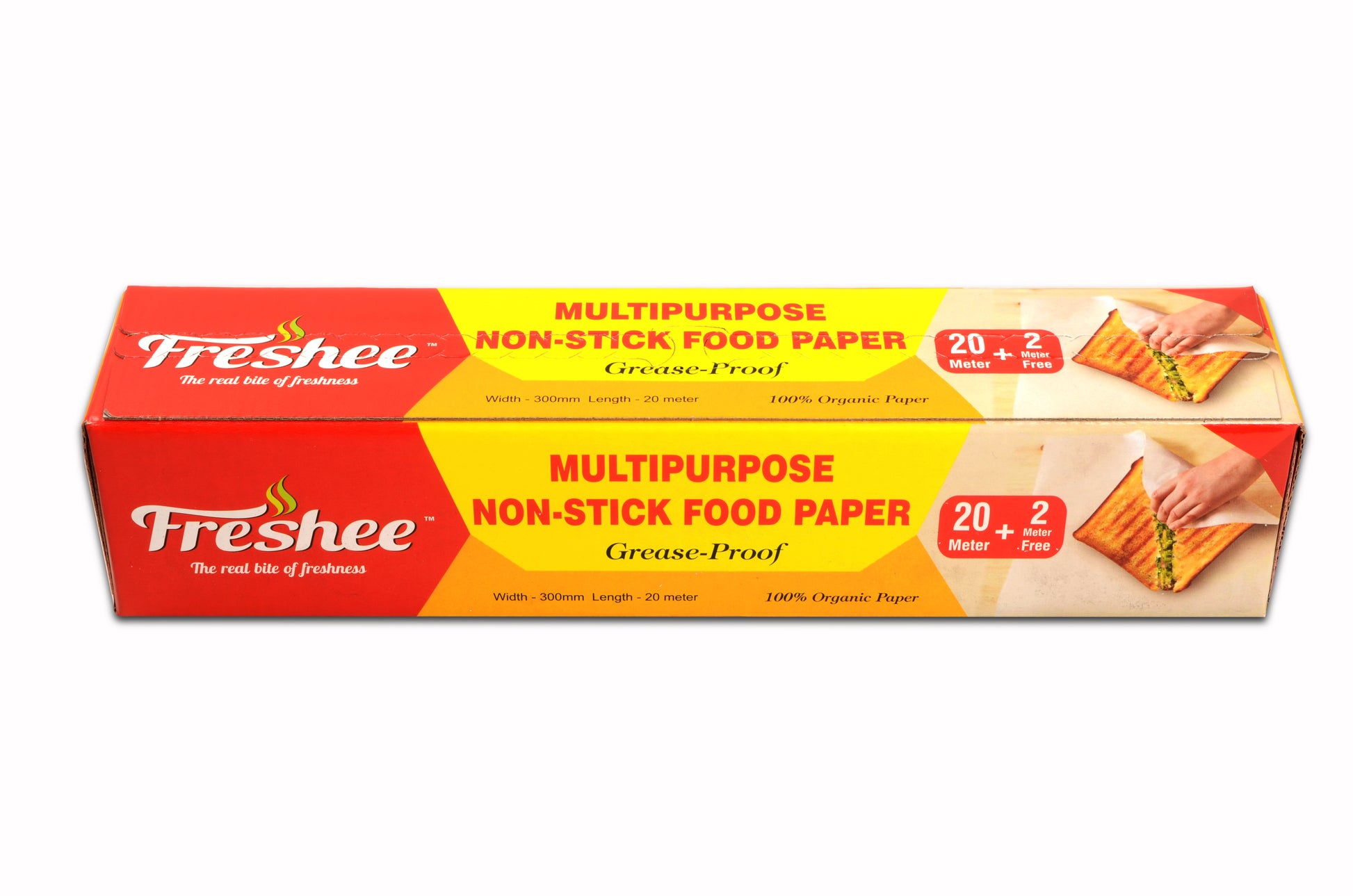 Greaseproof Paper  is a Non-Coated Food Grade Paper with high air permeability which does not allow steam to remain inside the bag, thereby keeping food fresh and crispy always.Freshee greaseproof Paper is FDA Approved:Opaque Oil & Water Resistant Impermeable to oil and grease Oven Safe (both Microwave and Conventional)Greaseproof paper is widely used in baking, cooking and food packaging. The popular applications being:Wrapping of Burgers, Sandwiches, Rolls, Patties, French Fries, Dosas and Idlis.Roti WrapBase Paper for CakesBaking PaperLiner inside sweets boxes and on food trays.